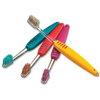Эти щетки предназначены для чистки детских молочных зубов. Специально разработанная толстая ручка не позволяет щетке скользить в детской руке. Мягкая щетина с закругленными концами для нежных десен делает эти щетки идеальными для детей.